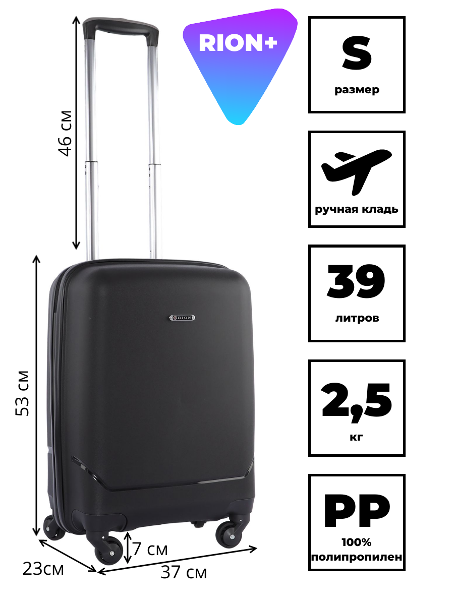 - размер S — ручная кладь (53×37×23 см)